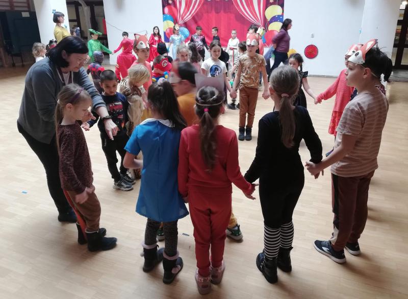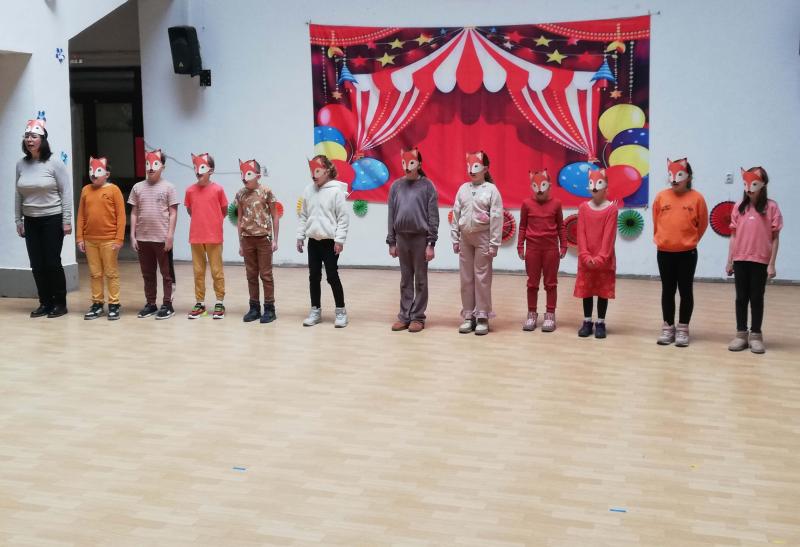 Miután megcsodálták, megtapsolták egymást a gyerekek, 'tip, top, topogok, kip, kop kopogok' játékot játszottak. Aztán ki-ki kapott egy papírcetlit, rajta egy állattal vagy egy állati eledellel. Amint megtalálták egymást, vagyis az állatok a táplálékukat, kezdődhetett a tánc. Miután kimozogták magukat az alsósok, következhetett a néphit szerint varázserővel bíró emberi táplálék: a fánk.