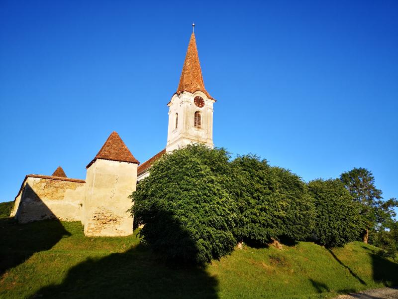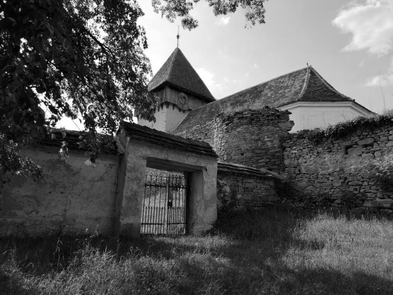 Ahol viszonylag még sokan megmaradtak az őslakos szászok leszármazottai közül, közel százötvenen, az Malmkrog, magyarul Almakerék, Szeben megyében. Megjegyzendő, hogy Almakerék Apafi birtok volt. II. Apafi Mihály 1713. február 1-jén, 36 éves korában, Bécsben halt meg. Koporsóját Almakerékre vitték, és a templom sekrestyéjében helyezték el. 1790-ben sírboltba tették ugyanott, majd 1909-ben apjával (I. Apafi Mihály erdélyi fejedelemmel), anyjával (Bornemisza Annával) és feleségével (Bethleni Bethlen Katalin fejedelemasszonnyal) együtt hamvait a kolozsvári Farkas utcai református templomban helyezték végső nyugalomra. Ahol németül beszélhettem (falvakról írok, nem városokról), rendszerint az erődtemplomok megmaradt „őreivel”, a teljesség igénye nélkül: Szászfehéregyháza (Deutsch-Weisskirch), Berethalom (Birthälm), Szászkézd (Keisd), Szászdálya (Denndorf), Almakerék (Malmkrog), Erkéd (Ärkeden), Mese (Meschendorf). Ezen galéria fotói Nádpatakon, Gerdályon és Mesén készültek az idei (2023-2024-es) programév végén, júniusban. Egy fotó közülük kakukktojás, amit évekkel ezelőtt exponáltam fekete-fehér negatívra, amikor először, még csak turistaként jártam Szászkeresztúron és Mesén (Meschendorf). A Petőfi Programban a szászok történetét nagyrészt a magyar összefüggések fényében vizsgálom, kutatom, annál is inkább, mert az erdélyi szászok teljes történetét csak az ezeréves Magyar Királyság történetén belül lehet megérteni, az 1918-1920, azaz Trianon utáni időszak történései pedig már Románia történetéhez tartozik.