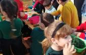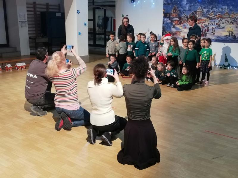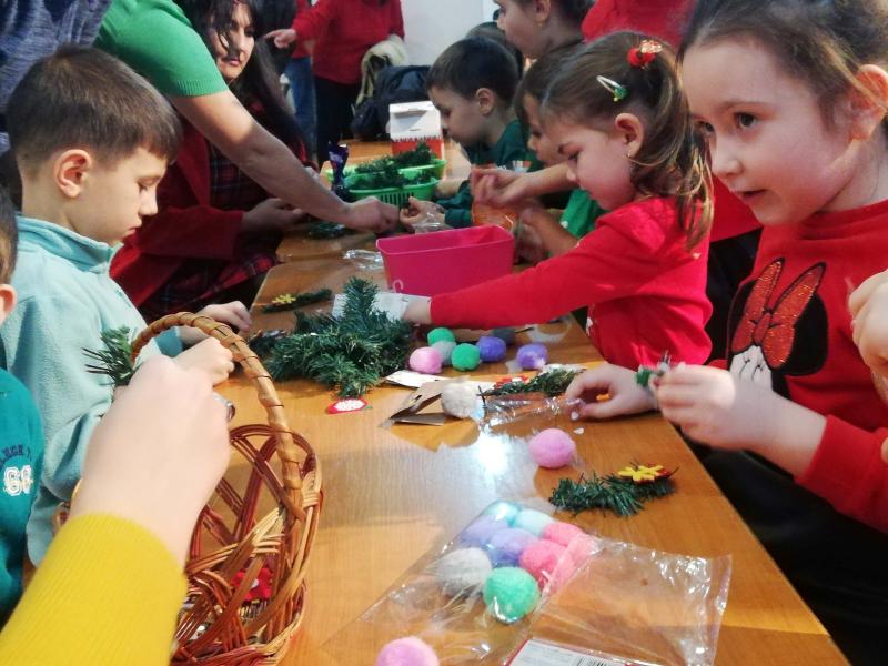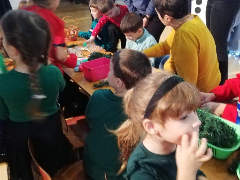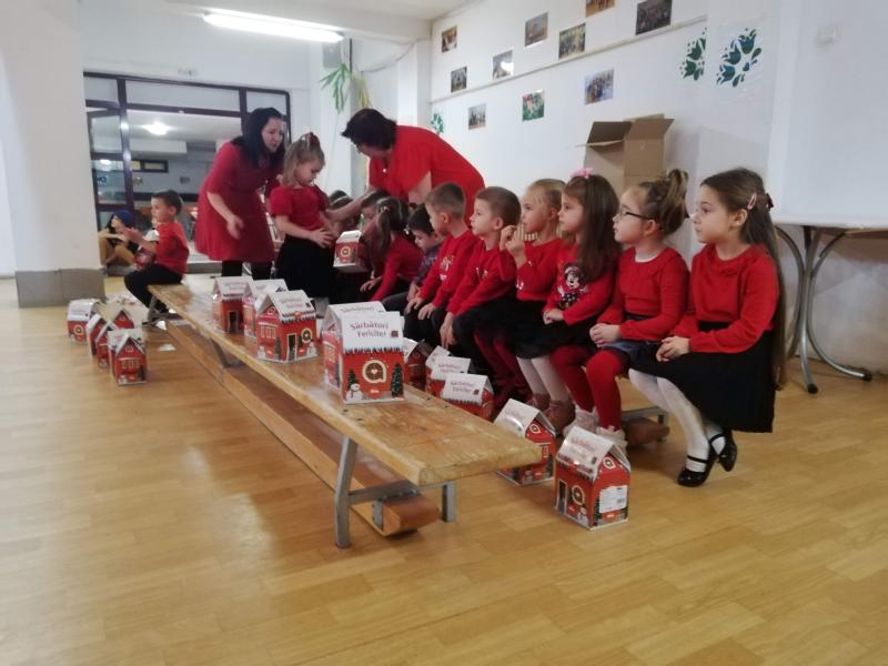 Megérdemlik az ajándékot. A Mikulástól mindenki kapott egy papírházikót. Aztán hirtelenjében az apukák átrendezték a teret, a padokat, asztalokat középre hordták. Előkerültek a harapnivalók, a színes, fényes, alapanyagok, a dísznek, koszorúnak valók. A szülők, nagy testvérek is kedvet kaptak. Szép, mikor a generációk így, együtt, közösen…