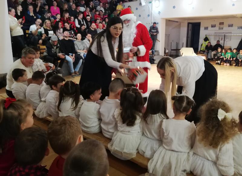 December 5-e kivételes nap volt. Talán az első az életükben, mikor szerepeltek, az első, amire egyszer emlékeznek. Aztán megérkeztek a középsősök, a vörös ruhások. Vékony kis csuklójukon arany csengő. Végül mindenféle zöldben jöttek a nagycsoportosok. Énekeltek. Együtt. Magyarul, románul, angolul, hogy mindenki érezze, neki, hozzá szólnak a gyermekszavak. Az óvodások odaintegettek anyának, apának, mamának, papának. Őszinte, emberi gesztus... Mosolyogtak (kezükön a csengők csilingeltek. Arcukra a könny rászáradt. Elbűvölte őket a fény, az embertömeg). Lépdeltek, pörögtek, forogtak. Szent Miklós távolról, a karosszékből figyelte őket. Ügyesen táncoltak. Jók voltak (egész évben többnyire. Olykor, néha persze csintalanok. De így kerek egy gyerek.)