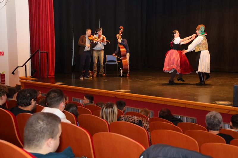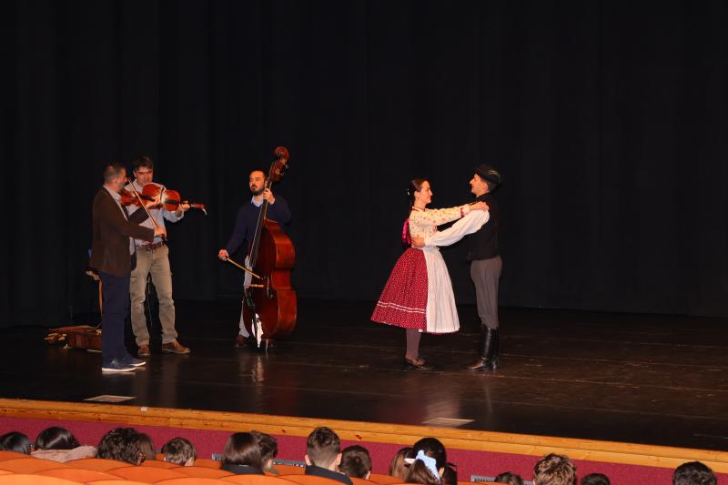 A foglalkozás keretében egyszerre került sor népi hangszerekkel való közelebbi megismerkedésre és különböző tájegységek táncainak, többek között rábaközi, mezőségi és kalotaszegi néptáncok, illetve verbunkos bemutatására.