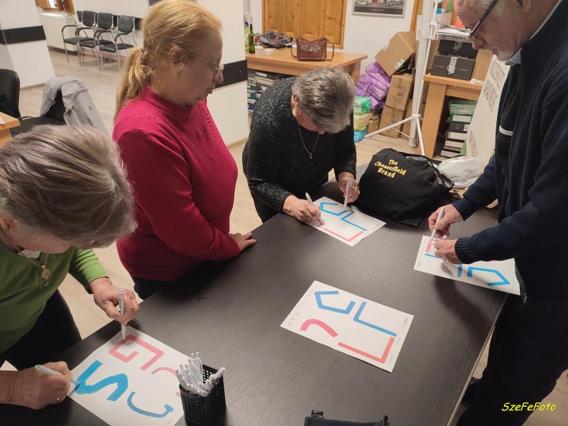 Erre a kapcsolatra szeptember óta vártak a klubot látogatók. Kedd délutánonként, (az iskolai 4. osztályos foglalkozásokat követően,) a nyugdíjas klubban standardnak számító programok (kártyázás, römizés) mellé, saját fejlesztésű "kétagyféltekés" motivációs feladatokkal, Heidi&Spidey gyakorlatokkal és "ZOZI módszer"-ből kölcsönvett finom-motorikus képességmegtartó gyakorlatokkal igyekeztem a klub tagjainak segítségére lenni.