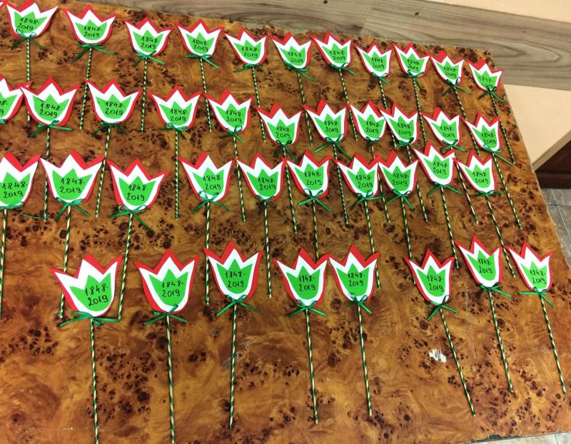 Az előadást megelőző héten vasárnapi kokárdakészítő foglalkozást szerveztünk az aktív, önzetlen és elkötelezett hozáállásukkal példát mutató Juhász Andreával és Szilly Gabriellával, ahol a papír tulipánok is elkészültek, amelyeket a megemlékezésre ellátogató érdeklődők vihettek haza az ismételt, 2020-as virágzás reményének üzenetével.