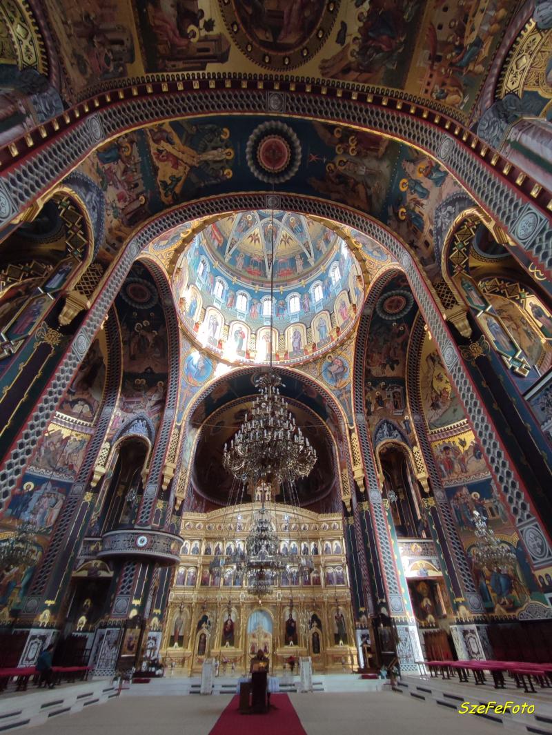 Így, ennek a sorozatnak a végén engedtessék meg egy számomra érdekes épület fölemlítése is. Az aradi Szentháromság-székesegyház egy ortodox székesegyház, az Aradi Főegyházmegye érseki székhelye. Az épületben található Aranyszájú Szent János ereklyéinek egy része is. A székesegyház festményét Cezar Constantin Cătălin Băluț festőművész készítette, és 2018 decemberében fejezték be, amikor a templom felszentelésére is sor került.