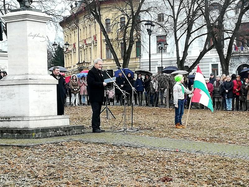A rimaszombati 4. sz. Hatvani István Cserkészcsapat lelkes fiataljai álltak díszőrséget dacolva az egyre inkább elszomorodó idővel. Gál Laura, a Tompa Mihály Református Gimnázium diákjának szavalatát Mács Mihály és Bodolló Nikol műsora követte, kik többek között a Nemzeti dal megzenésített változatát adták elő. Őket követte Szászi Zoltán költő, író ünnepi beszéde, végül Pataky András az Ivana Kraska Gimnázium tanulója Heltai Jenő: Szabadság című versét adta elő. A koszorúk ünnepélyes elhelyezését követően a hivatalos megemlékezés lezárásaként felcsendült a Szózat.
