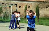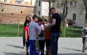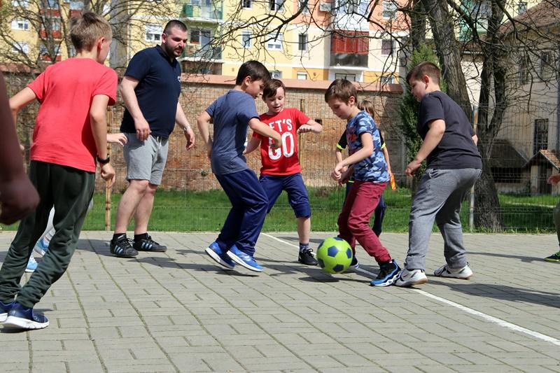 Rendhagyó focimeccsnek lehettek szemtanúi az érdeklődők pénteken délután a Báthory iskola udvarán. Ilyen hangos szurkolást is rég hallott már a környék, hiszen zengett az egész udvar a pompomlányok biztatásától. A barátságos mérkőzést a tavaszi idő is megihlette. A medgyesi délutáni iskolások újra birtokba vették a magyar iskola udvarát, a Medgyesi MADISZ nagyfiúi számára pedig, akik egykor szintén báthorysok voltak - némi nosztalgiára is alkalmat adott az esemény, hiszen a 2. és 3, illetve a 4. osztályosok két csapatban, a MADISZ fiúival kiegészülve rúgták a bőrt.