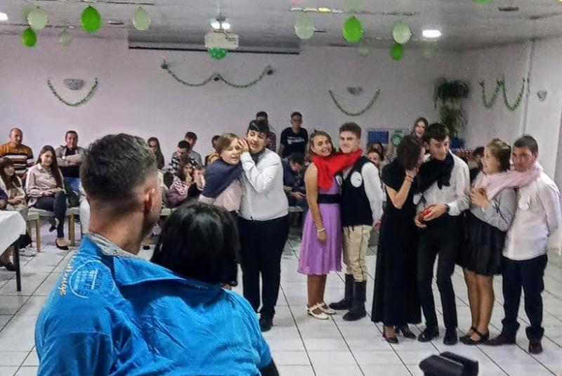 A kőhalmi középiskola magyar tagozatának diákjai idén újra megszervezték a gólyabált, a kilencedikes diákok beavató /befogadó ünnepségét.