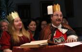 Idén is Hetedhét Országra szóló mesés bálba hívtuk a bányavidéki iskolakezdőket február 8-án, szombaton a Teleki Magyar Házba. Meghívottaink voltak a nagybányai, koltói, domokosi, felsőbányai, szamosardói és monói előkészítő osztályos gyermekek, királynőik, királyuk kíséretében, akiket őfelsége Mesenincs király (Szigeti Gyuszi) és Mesenincs királyné (Duna Jessica) fogadott teljes udvartartásával, valamint Világszép Nádszál királykisasszony (Balog Brigitta), kinek szíve felderítésére a palota látogatói - ezer veszéllyel, de főleg az Alattomos Nátha fenyegetésével megküzdve - hozzánk érkeztek.