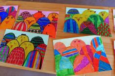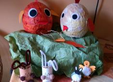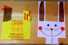 Papírból hajtogatható és színezhető nyulakkal, csibékkel, majd képeslapok készítésével foglalkoztunk. Lufi alapú papírmaséból tyúkot kreáltunk. Majd pompom technikát alapul véve nyuszit, csibéket, bárányokat alkottunk. Kórógyon emellett megismerkedtünk a dekupázs ragasztóval és a szalvétatechnikával, így gyönyörű tojásokat készíthettünk a falu lakóinak ajándékba. A gyerekek emellett kis kosárkákat is összeállíthattak a saját tojásaiknak. Vukováron a hatalmas papírmasé tyúkok, és a pompom állatkák mellett papírguriga alapú nyulakat is festettünk, ragasztottunk.