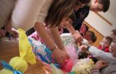 2016. március 24-én, csütörtökön a Bolyai János Középiskola alsós kisdiákjainak szerveztem húsvéti kézműves foglalkozást. Miután a kisfiúk elmondták locsolóverseiket, kezdődhetett a kora délután interaktív része. A gyerekek előzetes feladata volt, hogy hozzanak otthonról egy már nem használt zoknit, melyből nagyon könnyen nyuszit varázsolunk. A zoknikat megtöltöttük rizzsel, majd a tetejét cérnával, a nyakát pedig szalaggal kötöttük meg. Ollóval csinos füleket formáztunk, végül filccel rajzoltunk rá arcot. Nagyon vidám délutánt töltöttünk együtt és a gyerekek is örömmel vitték haza immár új funkciót betöltő zoknijukat.