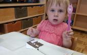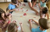 „A három kismalac” című mesét adtam elő Papírszínház segítségével. A gyerekek nagyon élvezték a történetet, különösen úgy, hogy sokan ismerték már, így együtt nagyon jól össze tudtuk rakni a történet fonalát. Miután meghallgatták a mesét, közösen énekeltük az „Egy kis malac röf...” kezdetű dalocskát.