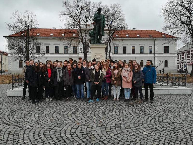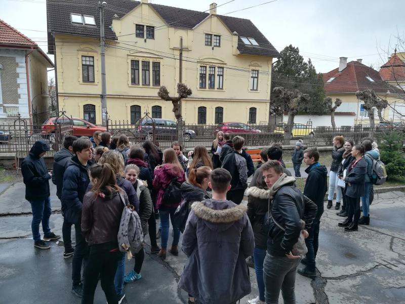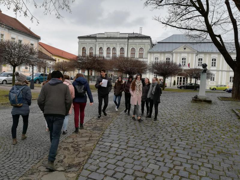 A Rimaszombatba érkező Kecskeméti Református Gimnázium diákjaival március idusán jártuk be a város nevezetességeit. Ugyan az idő nem kedvezett a szabadtéri sétának, mégis lelkes fiatalokkal indultunk el a Tompa Mihály Református Gimnázium elől, hogy a vendégségbe érkezett diákok megismerkedhessenek a valaha itt élt és alkotott nagy elődökkel, az épületekkel, s pár anekdotával, melyek Petőfi Sándorhoz kapcsolódnak, s ki e jeles napon személyével előtérbe került a városi séta alkalmával is.