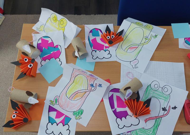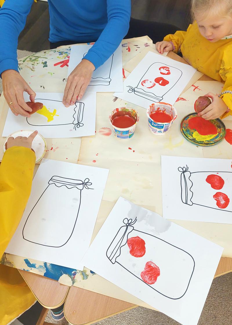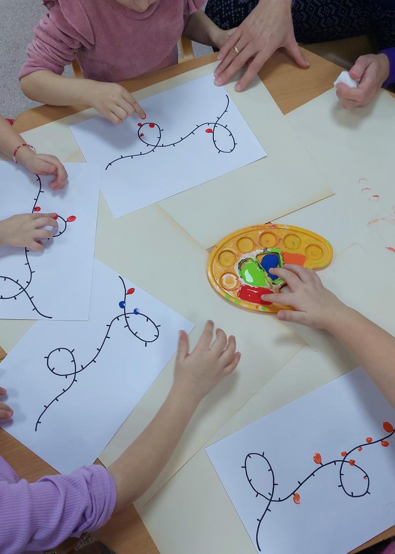 Ösztöndíjasként az óvodásokkal kézműves foglalkozásokat végzek. Minden héten az óvónő kijelöli a témát, én pedig ahhoz igazodó kreatív feladatokat válogatok össze. Igyekszem minőséges kézműves programokkal készülni, a szakmámból kifolyólag nagy hangsúlyt fektetek arra, hogy a kézügyesség mellett, a gyerekek vizualitását és esztétikai érzékét is fejlesszem. Az én személyes kedvenc témám az volt, amikor a színekről és formákról tanultunk. Különféle színű és alakra vágott papírokat vittem, melyekre testrészeket rajzoltam, és a gyerekeknek kubista jellegű portrékat kellett összeállítani. Nagyon izgalmas végeredmények születtek, érdekes volt megfigyelni, hogyan jelent meg a gyerekek különböző látásmódja az elkészült munkákon.