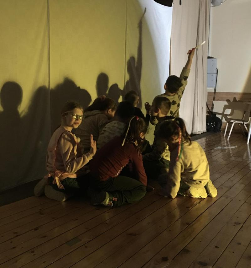 A kisgömböc-re esett a választásom, amit nagy részük már ismert, viszont árnyékszínházról mint technikáról még nem hallottak, szóval nagyon nagy lelkesedéssel vetették bele magukat a munkába, engem lenyűgözve a kreativitásukkal és megoldó képességükkel.