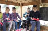 Miután nem csak a gyöngyöt, de engem is meg lehet fűzni, a gyermekek a jó idő miatt a foglalkozást a szabad levegőn kezdhették három különböző méretű papír tulipán kivágásával. Ezek összeragasztásával a magyar kokárda színeiben megjelenő, hurkapálcára ragasztott papír tulipánokat készíthettek.