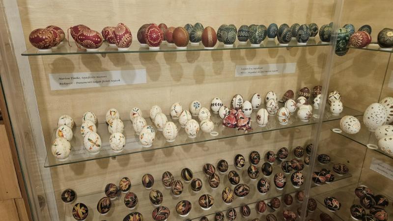 Lenyűgöző látvány volt számunkra a tárlat egyik különlegessége, egy kisebb szobában található, közel 3000 darabos hímestojás-gyűjtemény, mely tájegységenként csoportosítva mutatta be a különböző technikákkal díszített tojásokat.