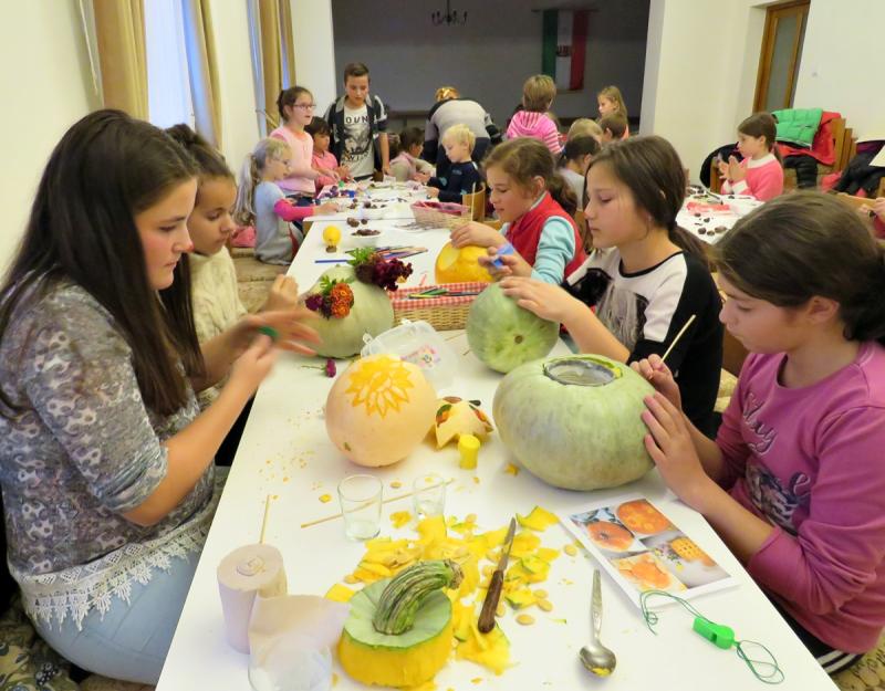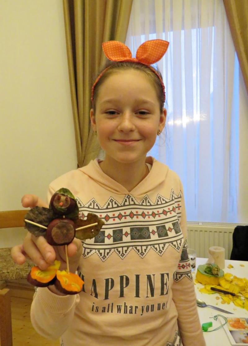 Boldogan fogadva a természet őszi kincseit 2016 októberében Gáspár Ildikó tanárnő vezetése alatt a délutáni magyar iskola tanulóival egy teljes délutánt kézügyességünk és határtalan kreativitásunk kibontakoztatásának szenteltünk. Fő alapanyagaink gesztenyék és tökök voltak, melyek kiegészültek gallyakkal, őszi levelekkel, virágokkal és egyéb apró elemekkel. Az itt született meseszép alkotások magukért beszélnek.