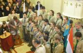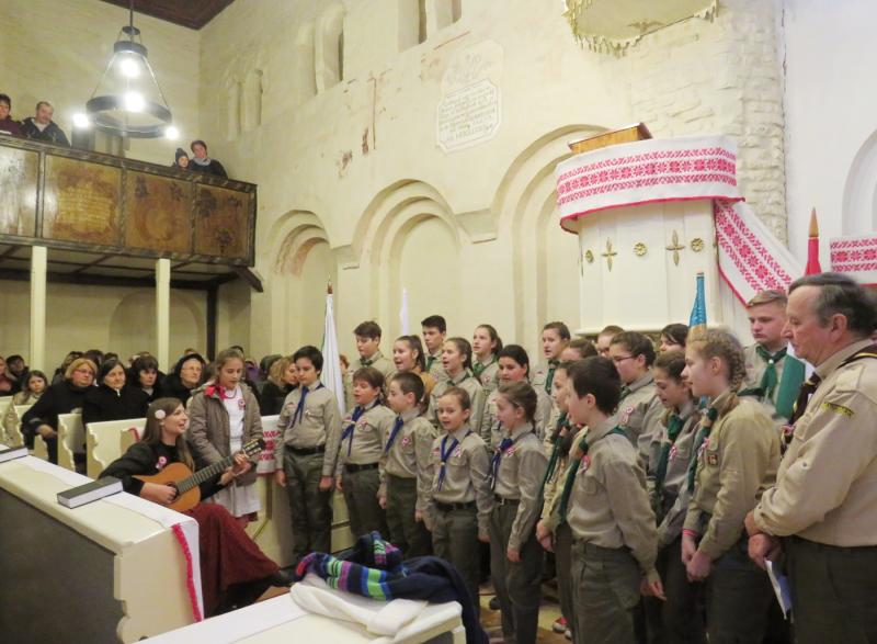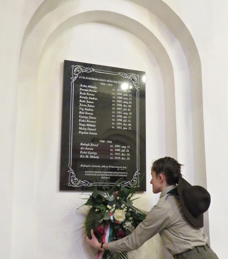 2018. március 18-án, a magyar zászló és címer napja alkalmából több megemlékezésen is zenei szolgálatot teljesítettünk a 16. sz. Báthory István cserkészcsapattal. Először a különleges kazettás mennyezetéről híres szilágysomlyói református templomban, majd a rejtélyes, dupla falú somlyóújlaki templomban énekeltünk az Istentiszteletek után. Az utóbbi helyszínen ez alkalommal lepleztük le, és koszorúztuk meg az I. és II. világháború hőseinek állított emléktáblát. Mindkét rendezvény során beszédet mondott a Kolozsvári Magyar Főkonzulátus részéről Csige Sándor konzul, aki az emléktábla avatásában is aktív szerepet vállalt. Nagy örömünkre az MTVA szatmárnémeti munkatársai Egyedi Bernadette és Egyedi Zsolt megtiszteltek bennünket jelenlétükkel és videófelvételen örökítették meg ennek a jeles napnak az eseményeit.