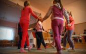 Kárpátalján, a bustyaházi magyar óvoda épületében a vasárnapi iskolás gyerekek október óta járhatnak néptánccal, illetve népi játékokkal, népdalok tanulásával egybekötött foglalkozásokra. A résztvevők közül szinte senki nem beszél magyarul, de ez nem akadályoz bennünket abban, hogy jól érezzük magunkat; a 45 perces foglalkozások mindig változatosan és tartalmasan telnek. Bár a gyerekekkel való kommunikáció a nyelvi akadályok miatt még mindig nem zökkenőmentes, úgy érzem, az elmúlt egy hónap alatt sokat fejlődtek beszédértésben, sőt egyre gyakrabban hallom őket magyarul beszélni. A gyerekeket a napokban kezdem el felkészíteni a karácsonyi műsorra.