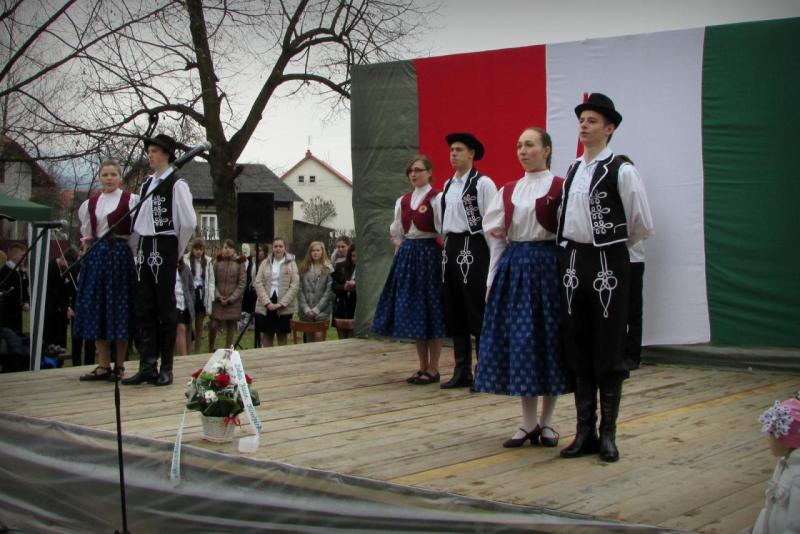 1848. március 15. hatalmas pillanat volt, a nemzet nagy pillanata. Minden szív egyszerre dobbant, minden lélek egybefonódott egy csodálatos másodpercre. A több évszázadnyi elnyomás után a nemzet megtalálta önmagát. Méltóképpen ünnepeltük Aknaszlatinán nemzetünk nagy eseményét, a magyar forradalom és szabadságharcot. A műsor délután két órakor kezdődött a Szent István templom kertjében. Beszédet mondott Kocserha János alpolgármester úr, valamint Szedlák Gyula, a KMKSZ helyi alapszervezetének elnöke is. Ezt követően a Szent Anna óvoda növendékei léptek fel, majd egy nagyon színvonalas előadást láthattak a helyiek a Bolyai János Középiskola pedagógusaitól, jelenlegi és volt diákjaitól egyaránt. A nagyjából 20 perces műsorban néptáncoltunk, énekeltünk, verset, színdarabot mondtunk, s az Örökségünk dal is felcsendült, mely azóta a legötletesebb videó címet is elnyerte. A megemlékezést koszorúzással zártuk, a menetet pedig az aknaszlatinai fúvószenekar kísérte muzsikájával.