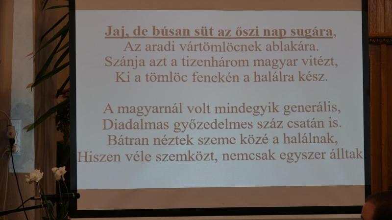 Az aradi tizenhármakról tartottak megemlékezést a nagybányai Óvárosi református templomban. Az alkalmon Kovács Sándor, a Szatmári egyházmegye nyugalmazott esperese prédikált, valamint az Istentiszteletet követően Bak László (Nagybánya-Óvárosi lelkipásztor) néhány alkalomhoz illő dallamot játszott el tárogatón, melyek éneklésébe a gyülekezet is aktívan bekapcsolódott.