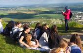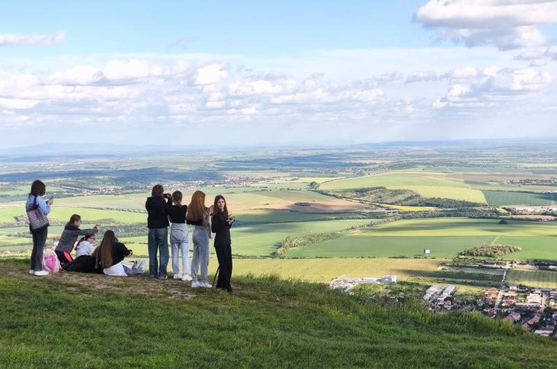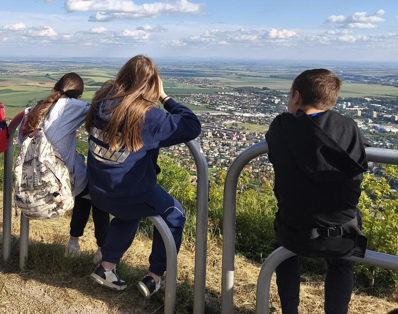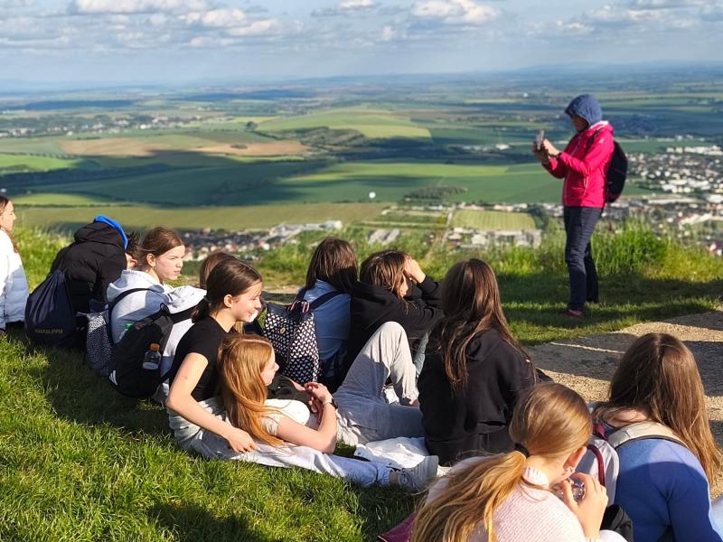 A májusi látogatás alkalmával két busszal érkezett a közel száz fős csoport. A tanárok és a diákok részére a több napos felvidéki kirándulás egyik részprogramjaként vezetett emléktúrát szerveztünk a nyitrai Zobor hegyre, ahol a magyar történelem kiemelkedő emlékeit ismerhette meg a csoport. A Zobor hegy Nyitra felőli magaslatán áll az Ezredévi emlékmű, melynek 1921-es felrobbantásának szomorú emlékeként ma már csak a torzóját láthatjuk. Ez az emlékmű a zoboralji magyarság egyik szimbóluma. Az emlékhelyhez kötődő történelmi események részleteit Csámpai László történész előadásában ismerhették meg a tanulók a hegytetőn. Ez a hely a maga természeti szépségeivel és döbbenetes panorámájával valóban olyan, mintha mesélnének a kövek.
