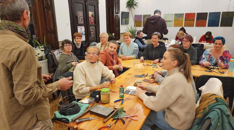Folytatódott a Mesterségről mesterségre képzés a nagybányai Teleki Magyar Házban. Ezúttal Nádudvary László és Nádudvary Mária vezetésével a drótékszerek készítésébe és a textilfestés mesterségébe mélyülhettek el a résztvevők.