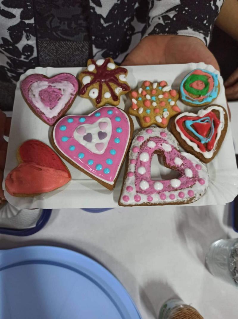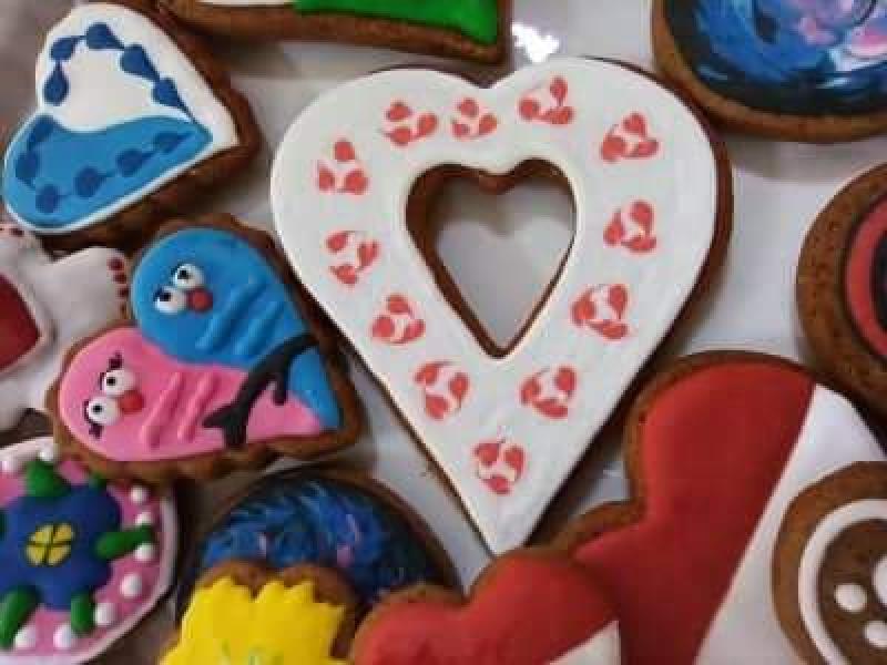 A „Kisebbségek terme” tele volt vidámsággal ez alkalommal. Rengeteg féle méretű és formájú előkészített sütemény csak arra várt, hogy kreatív festést kapjanak. A Szent Valentinra való emlékezést a szív alakú kalácsok segítették.