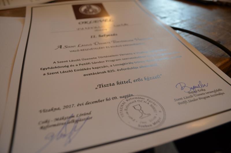 Szent László Üzenete történelemversenynek adott otthont Vízakna, a Szent László-emlékév alkalmából. A versenyt a Szeben megyei általános iskolás diákoknak hirdettük meg két kategóriában. 1-4. és 5-8. osztályos diákokat vártunk 3 fős csapatokban. Összesen 7 csapatot köszönthettünk, Medgyesről, Nagyszebenből és Vízaknáról érkeztek a gyermekek. Játékos történelemversenyt rendeztünk, melyet mesével, társasjátékkal, szó- és képkirakóval, kvízzel színesítettünk. A Nemzetpolitikai Államtitkárság jóvoltából megtekinthettük a Szent László történeti kiállítást, melynek megnyitóját a versenyhez igazítottuk, és mely tárlatot karácsonyig lehet még megnézni a Gyülekezeti Otthonban.