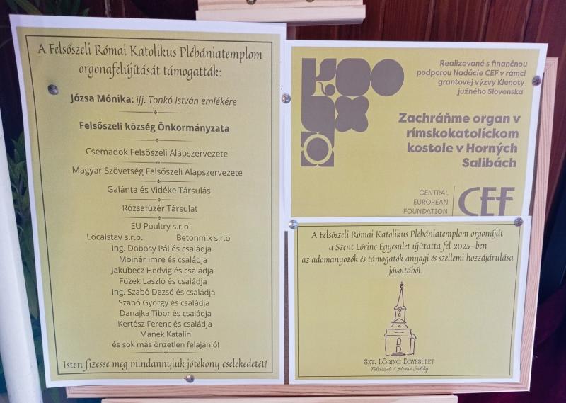 2026. február 9-én került sor Felsőszeliben a Szent Lőrinc Római Katolikus Plébániatemplomban a felújított orgona átadásának ünnepségére.