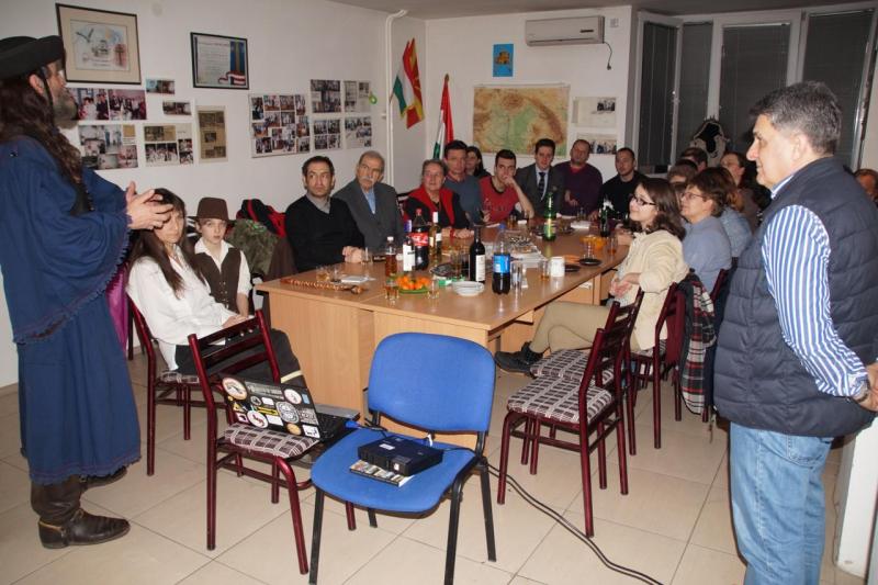 Talán még a február 11-ei honfoglalás kori előadásnál is sikeresebb volt a másnapi interaktív történelmi foglalkozásunk a Teleházban. Ezen az estén - az előzetes pozitív élményre építve - még többen jöttek el, s immár nemcsak a magyar történelem, ételek és italok jelentek meg a Szervezet központi termében, de a tradicionális zenék, dalok és táncok is! A rendezvényről bővebben korábbi cikkemben olvashatnak, "Háromnapos utazás nemzeti múltunkba - "történelmi fesztivált" szerveztünk Szkopjéban" címmel.