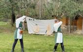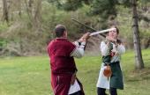Vezetőjük Csámpai László beszélt nekünk a lovagrend értékrendjéről és a nyolc éve működő gyermek és ifjúsági közösség működéséről. A bemutató után kipróbálhattuk a különböző ősi fegyvereket és a magyar középkori hadviselésbe kóstolhattunk bele.