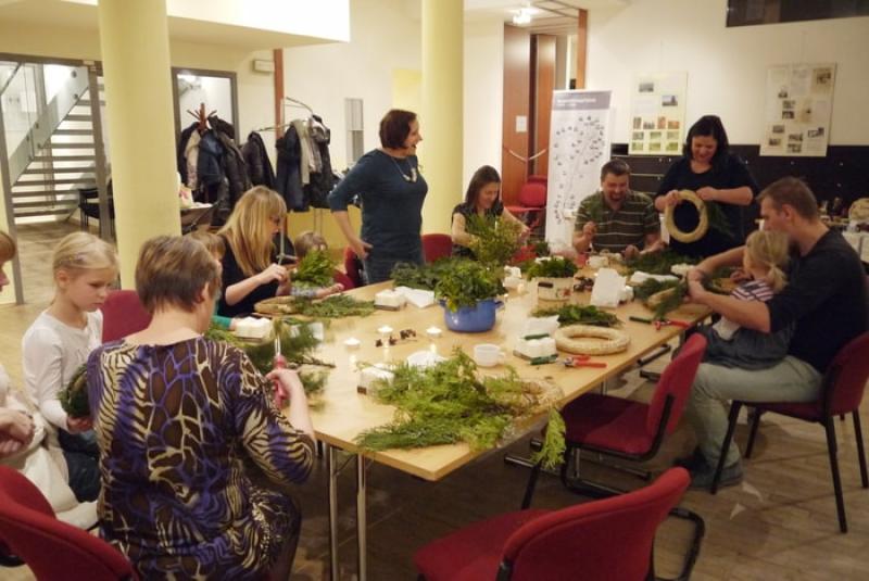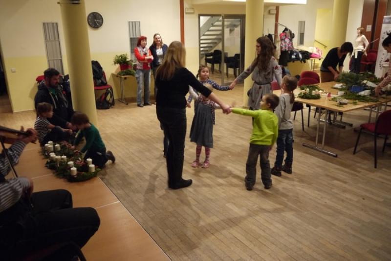 Az adventi műhely a prágai Nyitnikék néptánccsoport hagyományokat ápoló projektje. Célja a néphagyományok megértése és megélése, átadása a gyerekeknek és felnőtteknek egyaránt. A résztvevőknek idén is volt alkalmuk koszorút kötni Bohuniczky Annmária vezetésével, miközben a gyerekfoglalkozást a jelenlegi és egykori Petőfi ösztöndíjasok tartották.