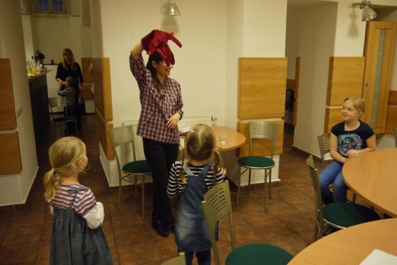 A november 25-i mesedélután témája a Kesztyű című mese volt. Az interaktív foglalkozás során a gyerekek megoszthatták a saját gondolataikat, véleményüket is az alkalom vezetőjével. Majd együtt készítették el a mese szereplőit ábrázoló kesztyűket, és játszhattak is velük. Ezzel még nem ért véget az alkalom, mert Márton Sára, korábbi ösztöndíjas gyerektáncházzal készült, ahol nemcsak táncoltak, énekeltek, de együtt is játszottak a gyerekek. Így szinte valamennyi művészeti ág képviselve volt. De talán ennél is fontosabb, hogy mindez magyar nyelven folyt, megerősítvén az összetartozás tudatát, a közös értékek megőrzését. Az este egy nagyon jó hangulatú táncházzal zárult Kósa Péter és a Huzavonó jóvoltából, ahol a Prágában tanuló, illetve dolgozó magyar fiatalok táncolhattak és mulathattak együtt.