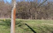 Petőfi Sándor Program ösztöndíjasaként az emléknap hajnalán, a kivégzések helyszínén és időpontjában egy szertartás keretében, többek között harangot kondítottam a kivégzettek emlékére. (Lásd a korábbi bejegyzésemet.) A harang függesztésére szolgáló nemzetiszín szalagot a helyén meghagyva, az azóta is a helyszínen emlékeztet erre az eseményre. A pontos helyszínét a téli Vártúra résztvevői ismerik, azonban a Várhídtól, a vesztőhely felé haladva nem nehéz rábukkanni. (Lehet, hogy nem a legpontosabb helyen mutatja az általam számított eredeti vesztőhely helyszínét, de a rendelkezésemre álló adatokból és a tehetségemből erre futotta...).