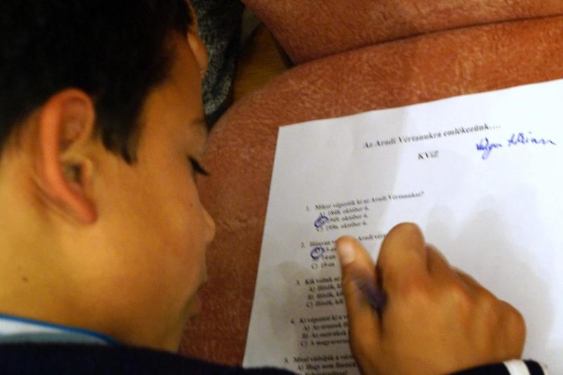 Az Aradi 13-ra emlékeztünk meg október 6-án a Zsoboki Általános Iskola 5-8. osztályos diákjaival, mely megemlékezésnek a Bethesda Gyermekotthon szolgált helyszínéül. A diákokkal előbb beszélgettünk a 167 évvel ezelőtti történtekről, majd gyertyát gyújtottunk a mártírok emlékére. Ezután megnéztünk egy filmes összefoglalót a történések előzményéről, az ítélethirdetésről, a kivégzésekről, és azokról a történelmi hatásokról, melyeket a mártírok halála indított el. A végén mindenkinek lehetősége volt egy kvíz segítségével lemérni tudását, melynek végén kifejthette, hogy véleménye szerint a mártírok halála elérte e a célját. A 15 kérdésre hibátlanul válaszolók könyvnyereményben részesültek.