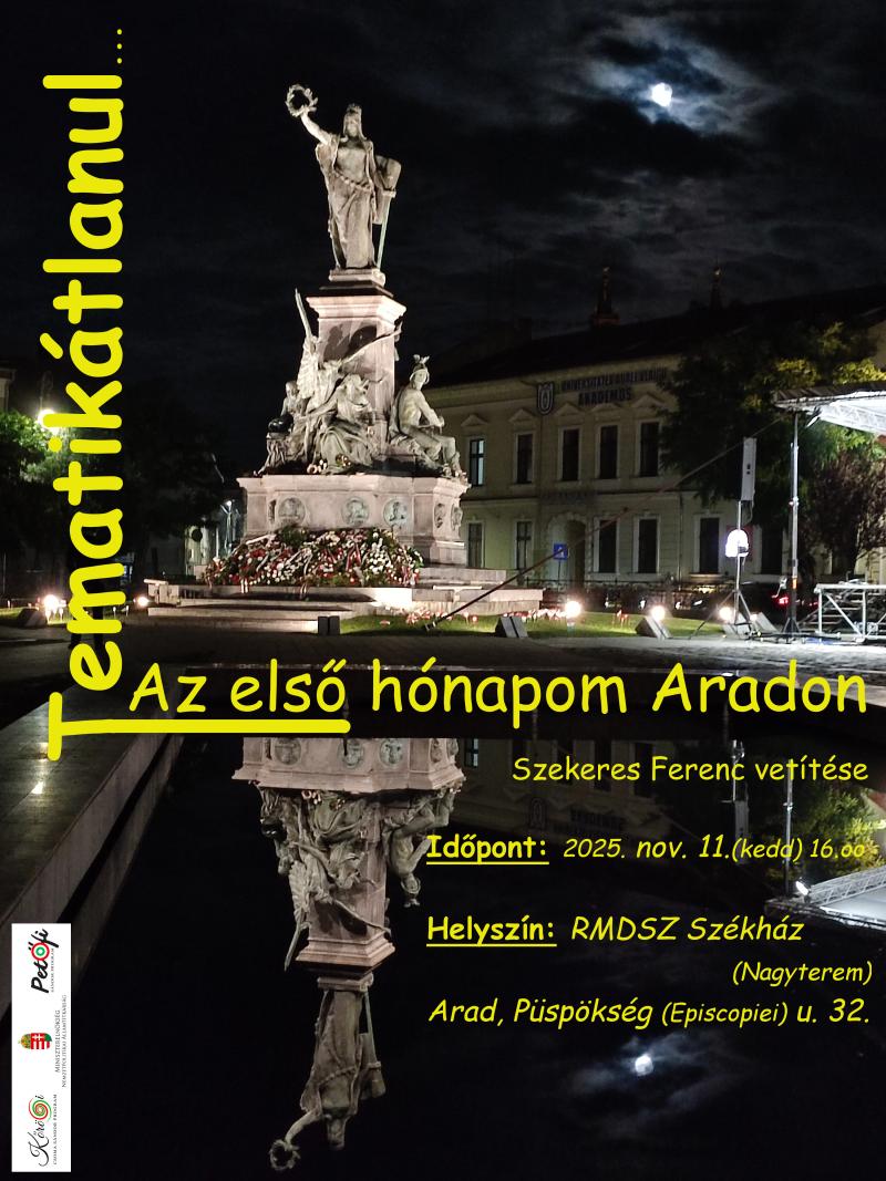 Vetítés a Romániai Magyar Demokrata Szövetség Székház nagytermében. Helyszín: Arad, Püspökség (Episcopiei) u. 32. Időpont: 2025. nov. 11. (kedd) 16.oo