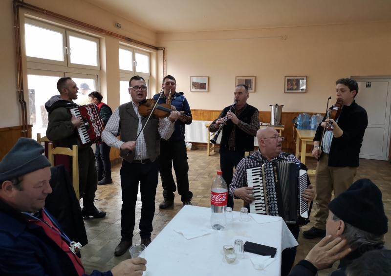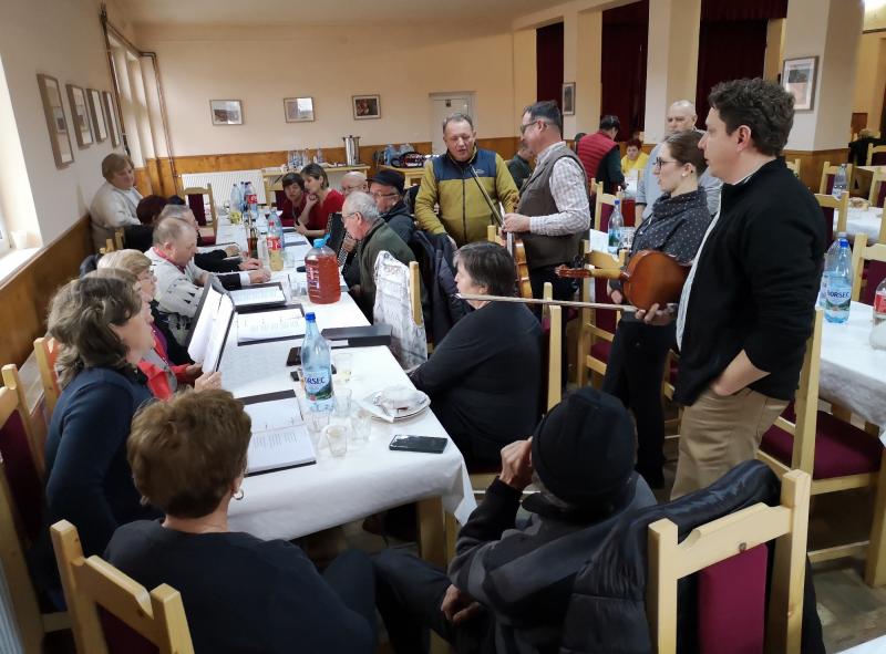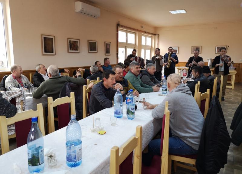 Az est hátralévő része disznótoros vacsorával, közös nótázással, eszmecserékkel és beszélgetésekkel telt.