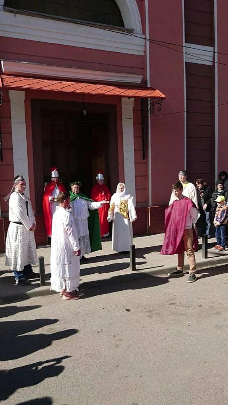 A virágvasárnap Rahón délelőtt ünnepi szentmisével kezdődött, majd délután 16:00 órától a keresztúttal emlékeztünk meg Krisztus szenvedéséről és kereszthaláláról. A katolikus templomtól a városi Sevcsenkó parkig 14 stáción keresztül mutatták be Jézus szenvedéstörténetét.
