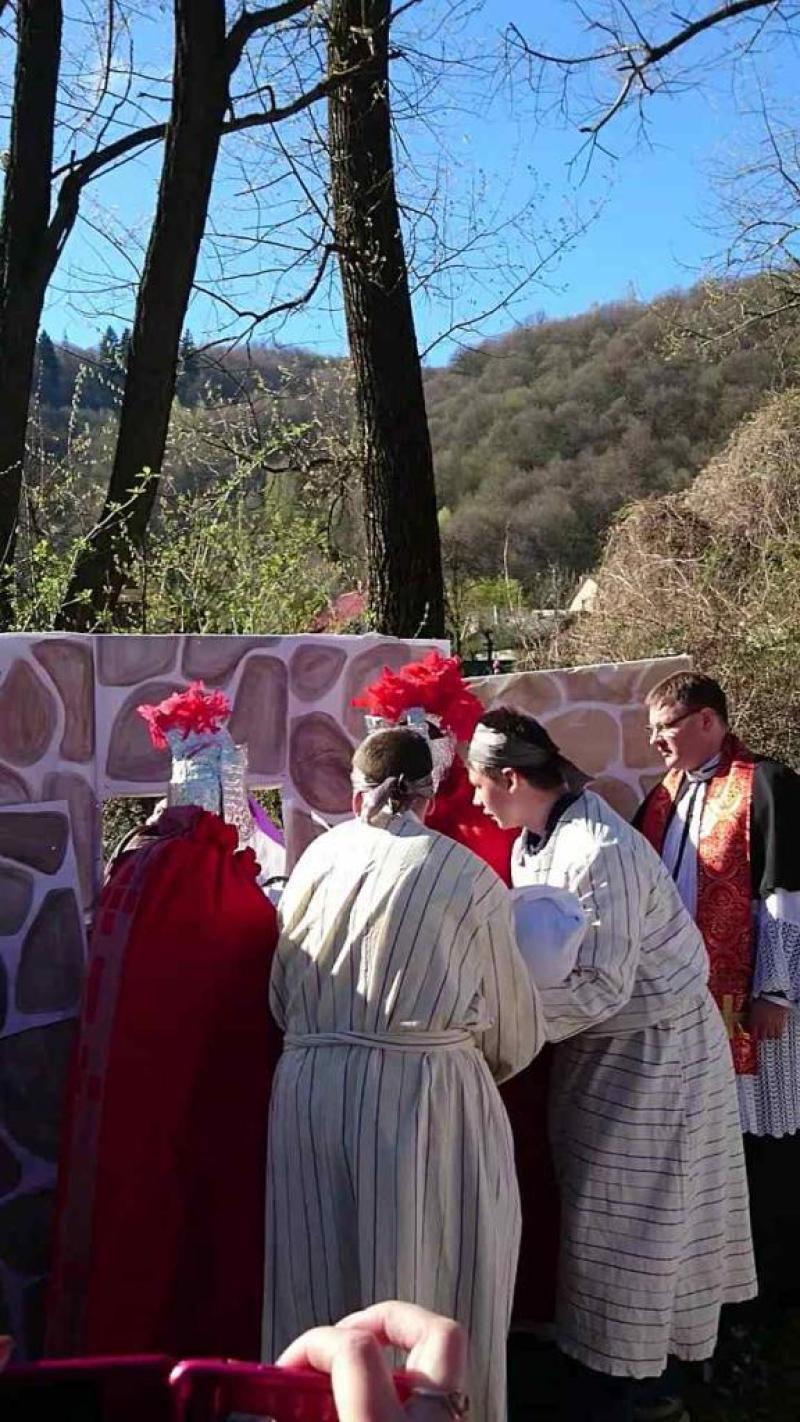 Ezen a napon az időjárás is csodálatos volt. A megelőző napokban hideg, eső, olykor hó is nehezítette az életünket Rahón, de virágvasárnapra megmutatta magát a nap, és délutánra már melegen sütött ránk. Nagy öröm volt számomra részt venni ezen az ünnepségen.