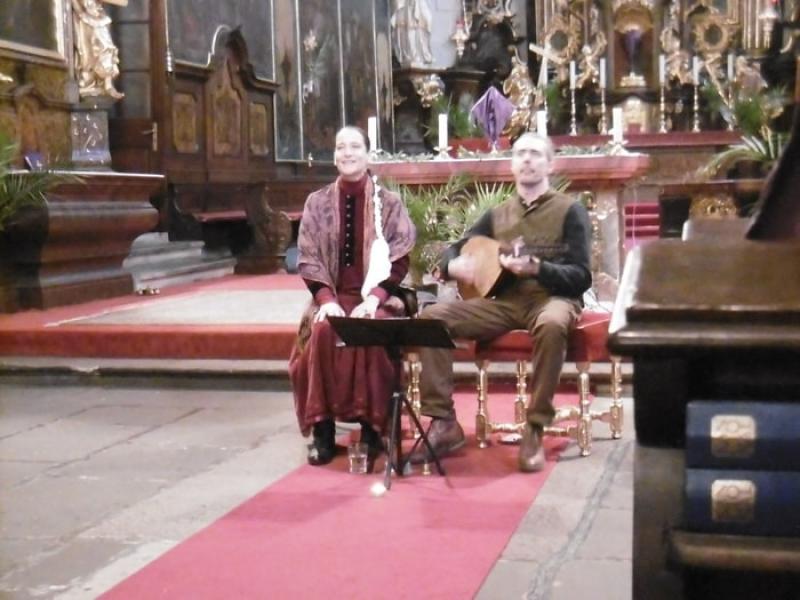 A Kobzos együttes (Navratil Andrea ének - Demeter László koboz) húsvétváró koncertjén a moldvai csángó hagyományban fennmaradt archaikus magyar szentes énekek csendültek fel saját, intuitív feldolgozásban, régizenei stíluselemekkel gazdagítva, újszerű zenei élményt kínálva.