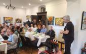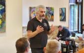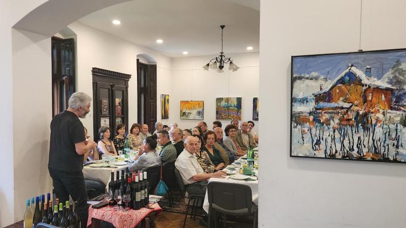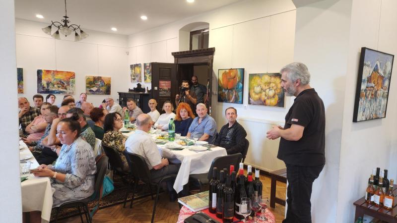 Az idei Teleki Napok alkalmából zenés borskóstolót tartottak a Teleki Magyar Házban: a kiváló borszakértő és gasztronómiai szakíró (mellesleg politológus és közíró) Borbély Zsolt Attila vezetésével, aki a Kárpát-medence legjobb borait a Kárpátia Borház kínálatából válogatta össze. Miközben kilenc borrégió kilenc borát kóstolgattuk a Móri Ezredestől az Ipolysági Kékfrankosig, a kellemes zenéről, hangulatról a zilahi Major Arnold (hegedű) és Báró Ádám (tangóharmonika) gondoskodtak.