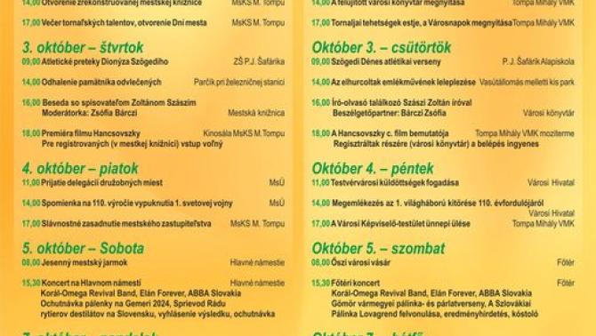 Az idei Tornaljai Városnapok rendezvénysorozata 2024. szeptember 28-tól október 7-ig tartott. A programok között…