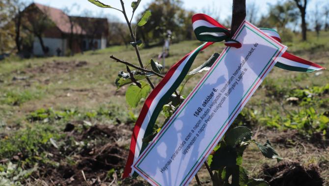 A Kallós Zoltán Alapítvány tanulói újraszalagozták a tavalyi évben emlékül elültetett 13 gyümölcsfát.
