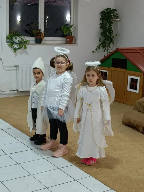 Az iskolások gitáros csoportjának magyar tagjai jelezték, hogy szívesen fellépnének, bemutatnák tudásukat, így a műsor velük kezdődött: két román nyelvű kolindát adtak elő. Ezután karácsonyi versek hangzottak el, majd egy hegedűszólót követően A négy gyertya meséjének megható története következett. A második hegedűszóló, a Csendes éj dallama ráhangolta a szereplőket és a közönséget a több mint 2000 éves bibliai történetre. A betlehemes játék bemutatta az emberré lett Isten földre születésének csodáját, szerény körülményeit, megjelenítette szereplőit: Józsefet és Máriát a kis Jézussal, angyalokat és pásztorokat, mesélőket és bölcs királyokat… Az előadás az egész világnak békét kívánó közös énekkel zárult: Isten békéjét kértük a szívünk, családunk, nemzetünk és a világ számára.