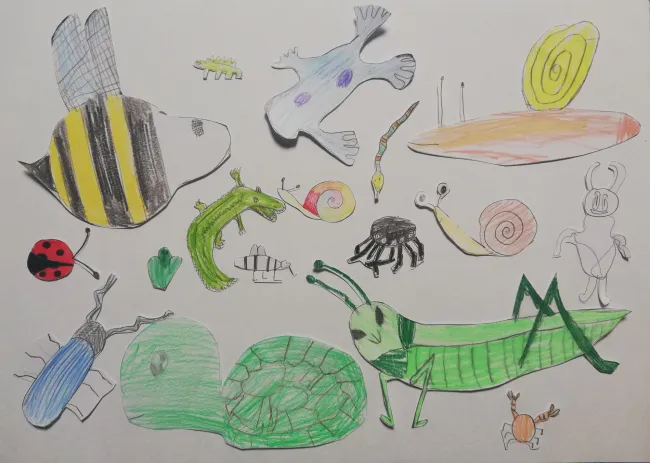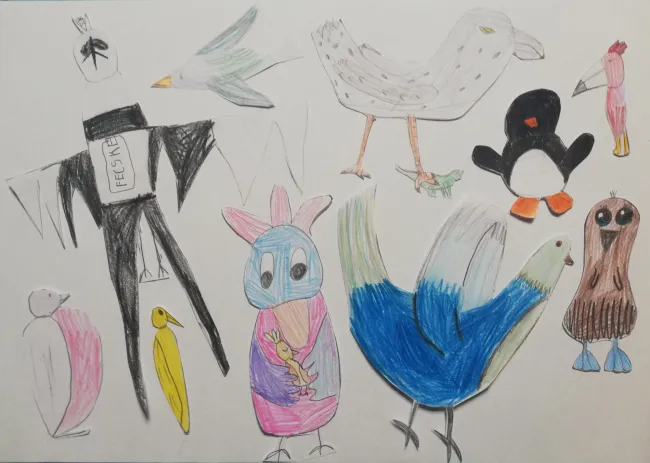 Több száz barmot, temérdek madarat, csúszómászót és vízi állatot rajzolnak, színeznek (és tépnek, gyűrnek, áthúznak, radíroznak.)