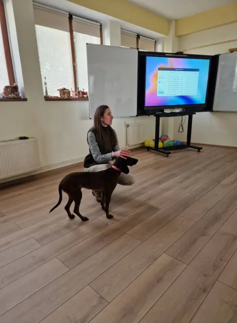 Ezt követően Zsidai Sára, vajdahunyadi ösztöndíjas társam, Csipkére keresztelt bajor vérebével prezentálta a kutyák kommunikációs képességeit. Előadásából hasznos tudnivalókra tehettünk szert – hogy csak a legfontosabbat említsem –, megtudtuk, hogyan olvassuk a kutyák jelzéseit és testbeszédét. Bár némileg borítékolható volt, kétségtelen, hogy a kutyus mindenkit levett a lábáról – a fellépők közül egyértelműen ő vitte el a pálmát!