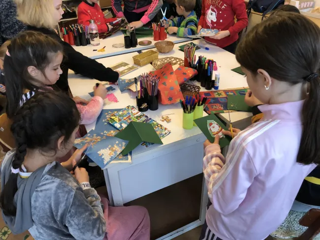 A tevékenységekbe november óta rendszeresen bekapcsolódhatok és az adventi időszakban hagyományosan mézespogácsát sütöttünk, adventi koszorút készítettünk szombatonként pedig kis díszeket, képeslapokat készítettünk. A tanárnő úgy látja, hogy minden évben egy téma köré szerveződik a kézművesség: