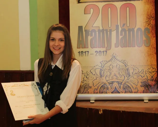 A 11-12. osztályosok kategóriájában két harmadik díjat osztott ki a zsűri, az egyiket Vadász Emma Magdolna, a másikat Lázár Barbara kapta, mindketten hajdúböszörményi tanulók, az első díjat pedig Bertalan Tímea (Székelykeresztúr) érdemelte ki. Az idei esztendőben az Arany János-díjat a nagykőrösi Cselóczki Boglárka vihette haza, aki a 9-10. osztályosok kategóriájában indult, s a teljes mezőny legjobbjaként jól megérdemelten gazdagodott a különleges kitüntetéssel.