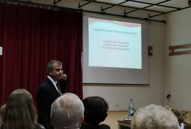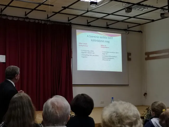 2019. október 14-én, hétfőn, 18 órától tartotta meg a Gaudeamus Ház művelődési termében Veress László marosszentkirályi lelkipásztor rendhagyó előadását az időről.